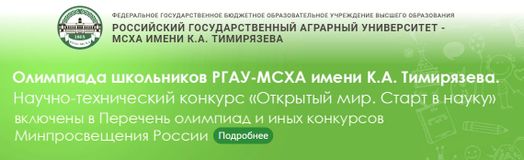 Российский государственный аграрный университет – МСХА имени К.А. Тимирязева приглашает учащихся 9-11 классов и колледжей принять участие в Олимпиаде школьников и Научно-техническом конкурсе учащихся «Открытый мир. Старт в науку»