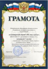Подведены итоги районного конкурса «Волонтером быть здорово!». Победителем конкурса в номинации "Волонтером быть здорово" (конкурс видеороликов) стал волонтерский отряд «По зову сердца», который представил на конкурс 2 видеоролика. Жюри конкурса высоко оценило волонтерскую деятельность отряда и присудило призовые места за каждый видеоматериал: 1 место видеоролик «Новогоднее чудо»; 3 место «Помогите нам выжить».